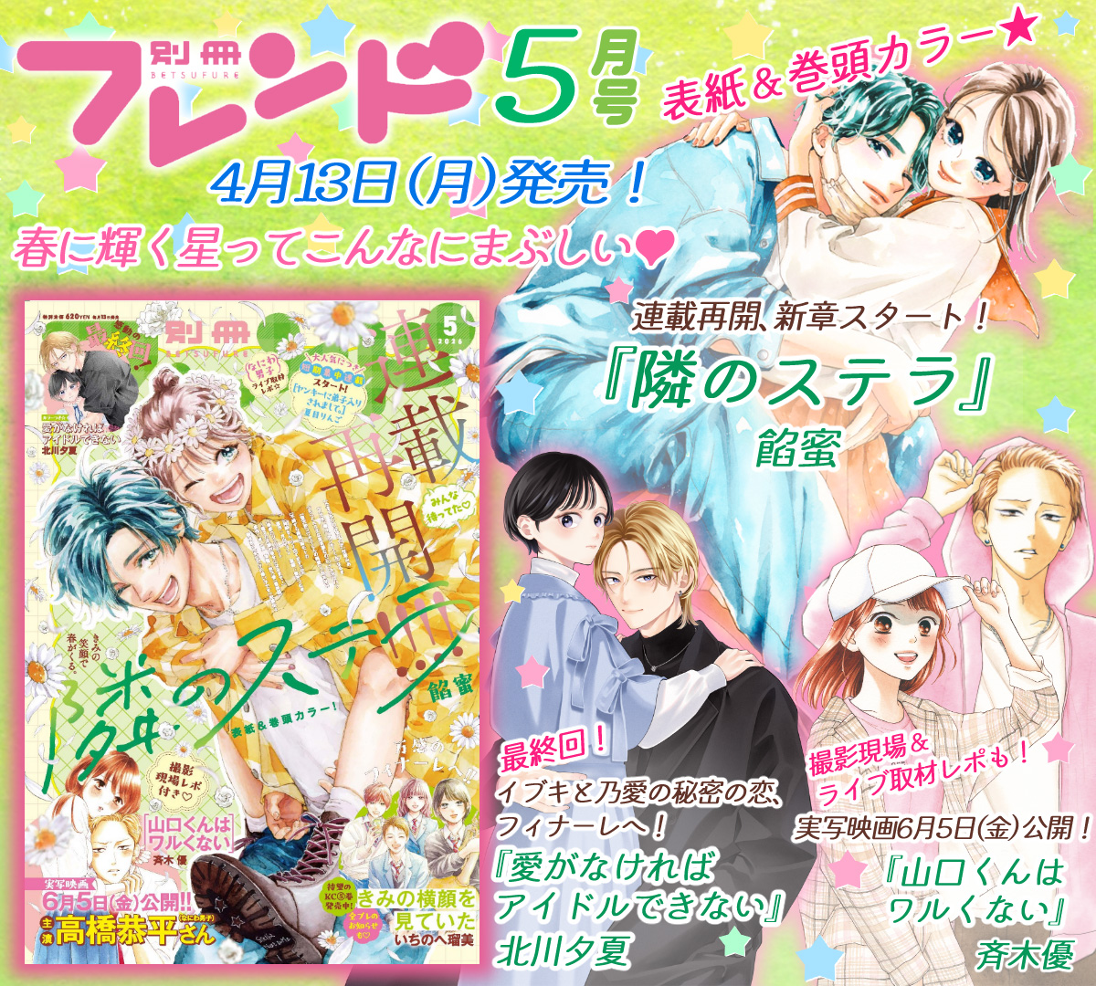 【別フレ5月号】恋と青春が眩しすぎる春の星、お届けします★ 『隣のステラ』連載再開! 山口くん実写映画化情報も盛りだくさん♪